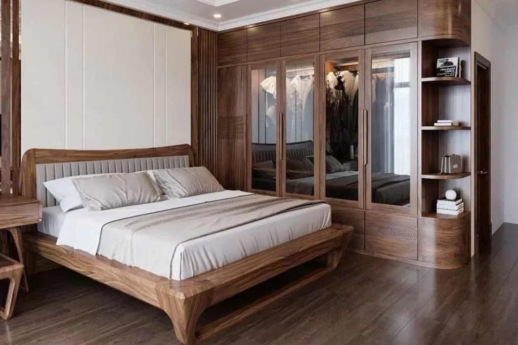 Nội thất giường gỗ tự nhiên phòng ngủ, kết hợp tủ quần áo