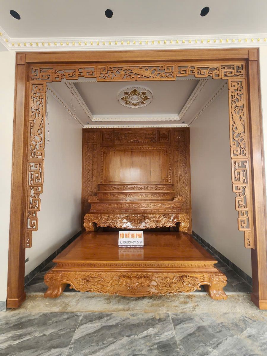 Ban thờ. cuốn thư câu đối, vách ban thờ gỗ dổi