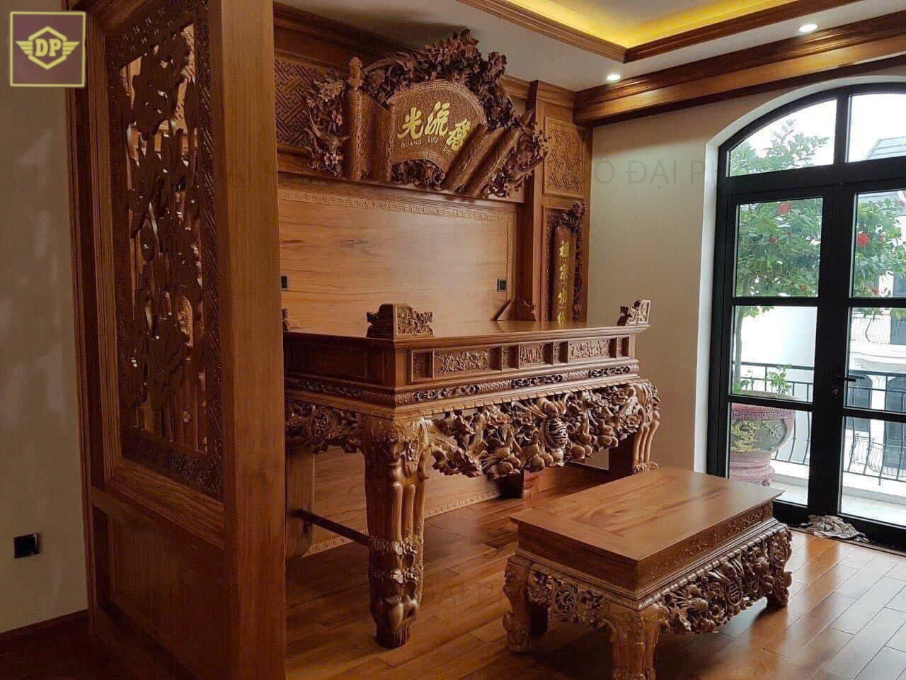 Ngoài ra, gỗ tự nhiên còn có độ bền cao, chịu được sự tác động của thời gian và môi trường. Khi sử dụng gỗ tự nhiên, bàn thờ sẽ giữ được vẻ đẹp theo thời gian, phù hợp với không gian sống của gia đình người Việt, đồng thời đáp ứng đủ tiêu chí về tâm linh.