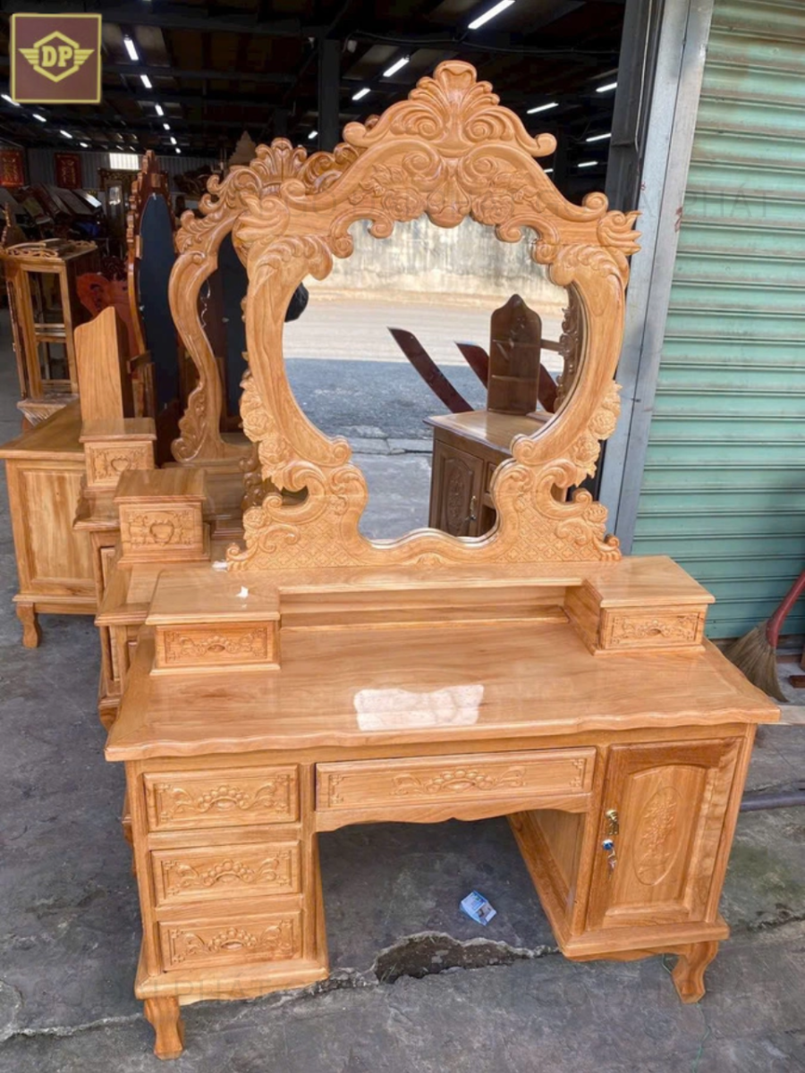 Không chỉ đẹp về mặt thẩm mỹ, gỗ gõ đỏ còn có đặc tính cứng và bền, khả năng chống xước và mối mọt tốt, rất phù hợp cho việc chế tác bàn trang điểm. Thêm vào đó, gỗ gõ đỏ còn rất dễ chế tác, cho phép người thợ thủ công tạo ra những đường nét tinh xảo, cầu kỳ.