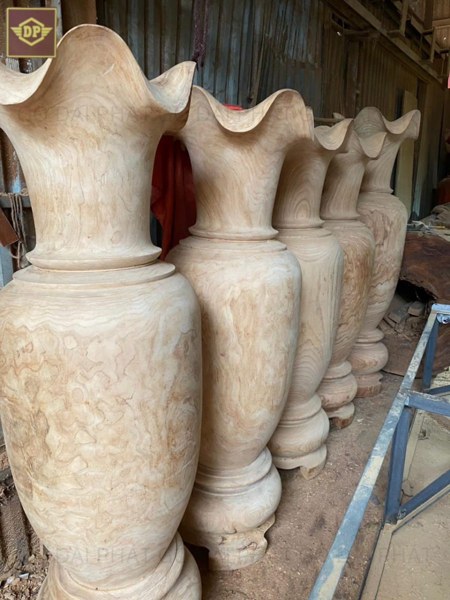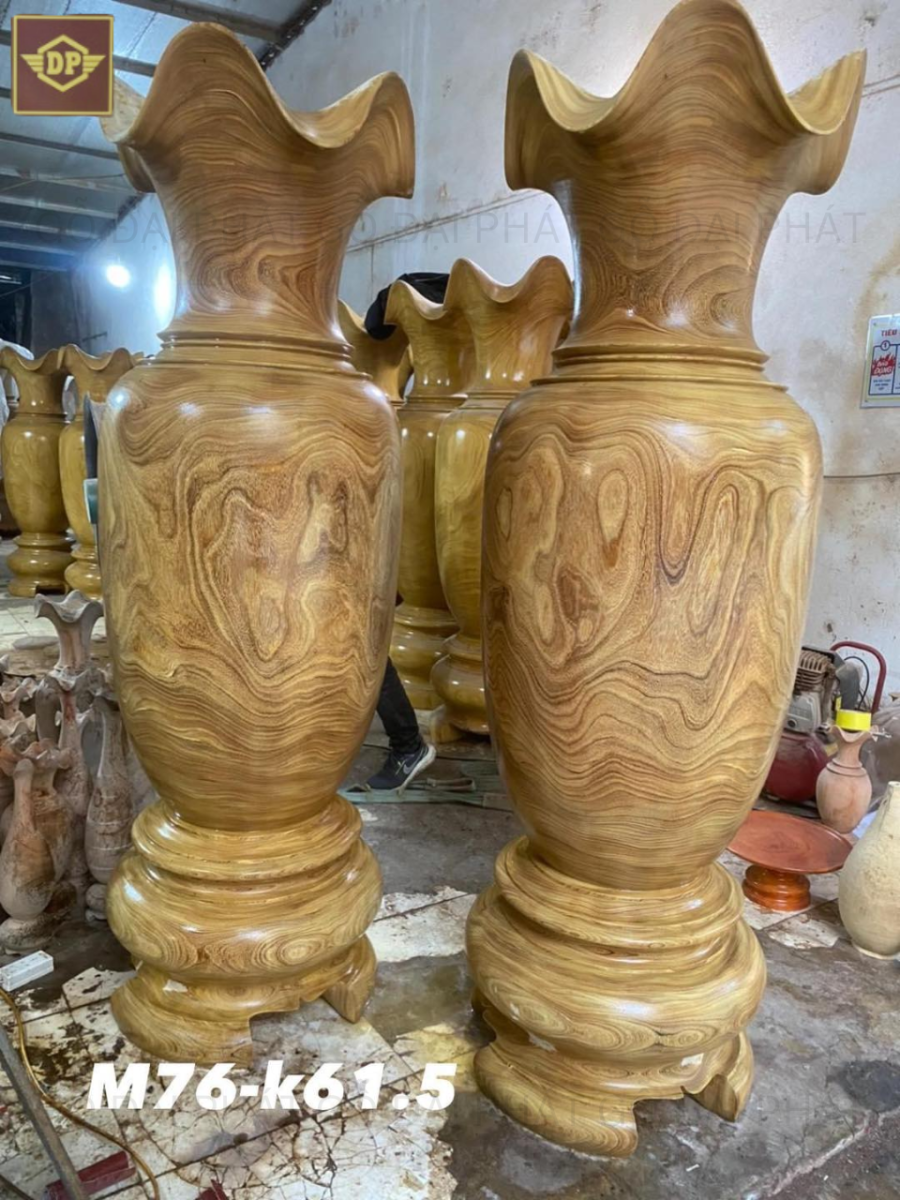 Gỗ cẩm vàng được biết đến với độ bền cao và khả năng chống mối mọt tốt. Chất liệu này thường được sử dụng để làm các sản phẩm nội thất cao cấp như bàn ghế, tủ kệ, và tất nhiên là cả những chiếc lục bình đầy nghệ thuật.
