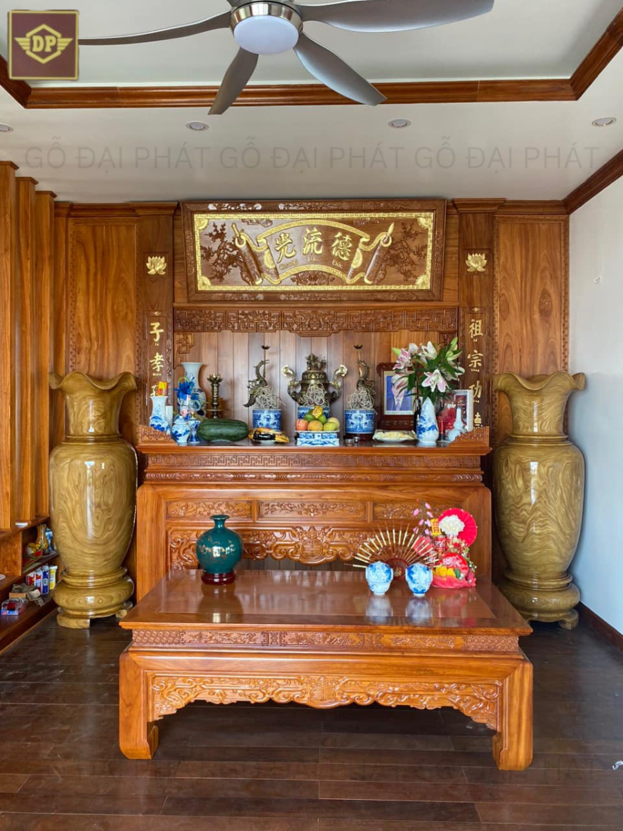 Lục bình gỗ cẩm vàng với thiết kế tinh xảo, vân gỗ đẹp mắt, là món đồ nội thất thể hiện đẳng cấp riêng biệt của gia chủ, mang lại vẻ sang trọng cho không gian.
