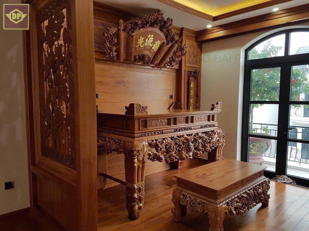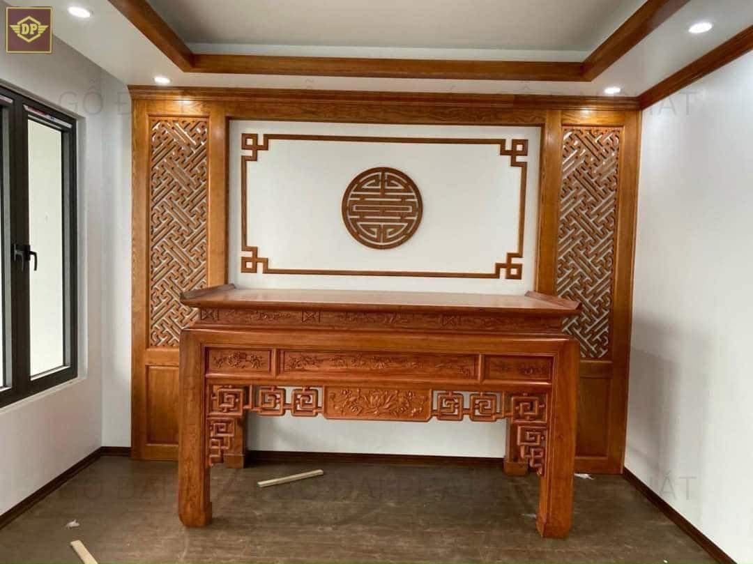 Vật liệu gỗ tự nhiên là lựa chọn hàng đầu cho bàn thờ và các đồ nội thất trong phòng thờ. Gỗ không chỉ mang lại vẻ đẹp sang trọng mà còn có ý nghĩa tâm linh sâu sắc. Sử dụng các loại gỗ quý, có vân đẹp sẽ giúp không gian thờ cúng trở nên nổi bật và thu hút hơn.