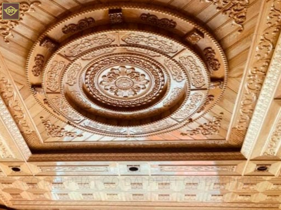 Mẫu trần gỗ tự nhiên với thiết kế sang trọng, chất liệu cao cấp, hoa văn tinh xảo, mang đến vẻ đẹp ấm cúng, đẳng cấp và bền vững cho không gian sống hiện đại.