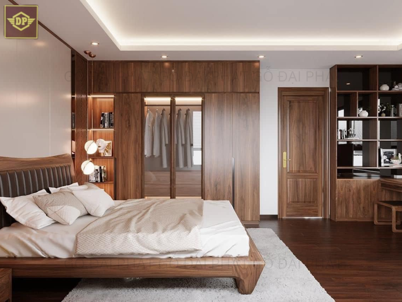 Phòng ngủ là không gian riêng tư, vì vậy việc thiết kế nội thất từ gỗ tự nhiên sẽ giúp cho bạn có những giấc ngủ ngon.