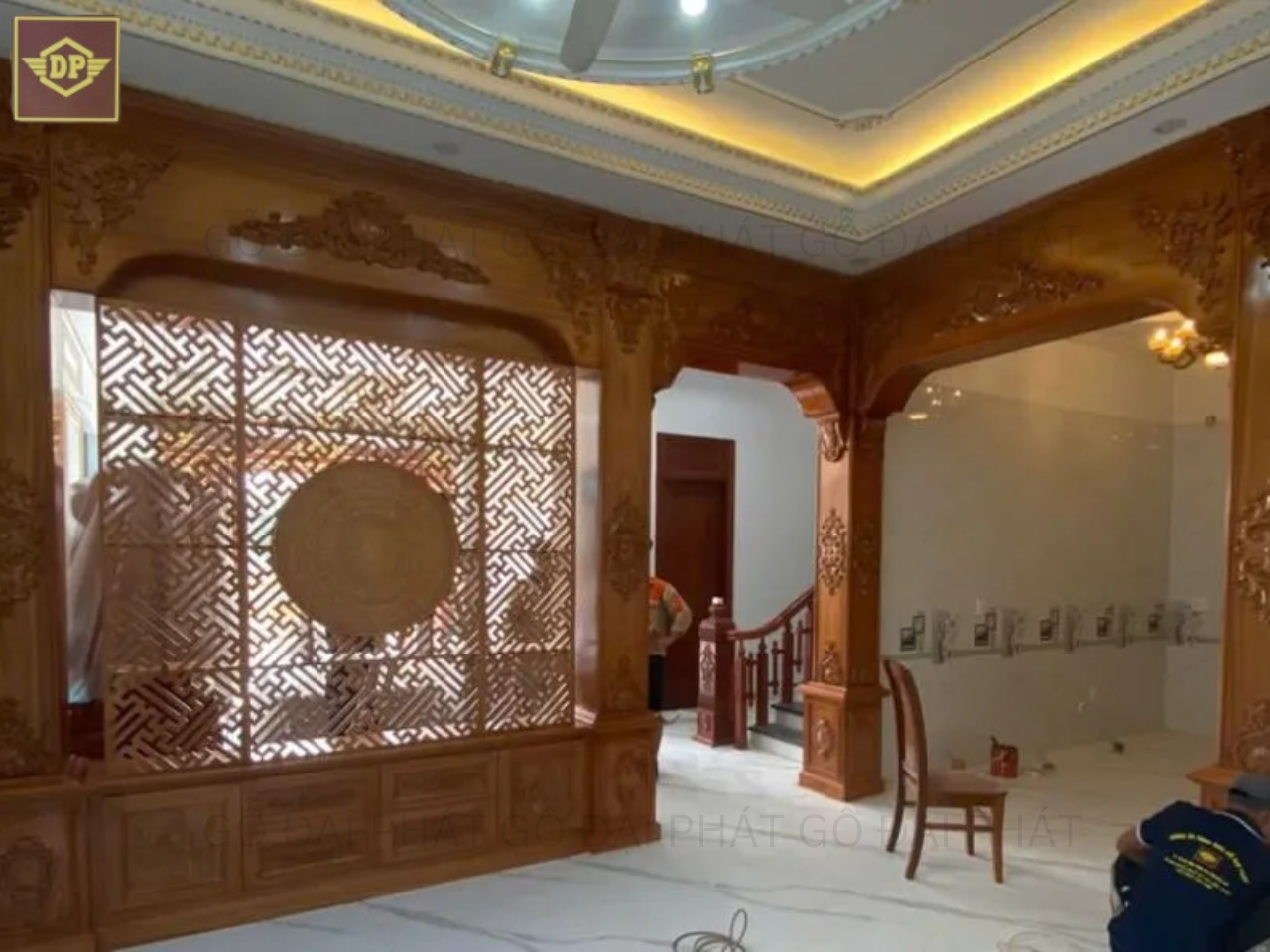 Ngoài chức năng ngăn chia không gian, vách ngăn gỗ trang trí còn có vai trò như một tác phẩm nghệ thuật. Với những họa tiết chạm khắc tinh xảo và màu sắc bắt mắt, loại vách này không chỉ tạo ra khu vực riêng tư mà còn là điểm nhấn độc đáo cho ngôi nhà.