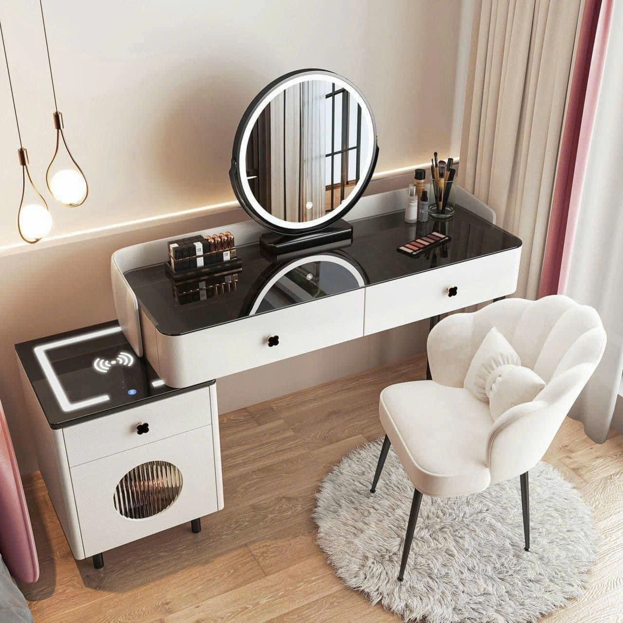 Tủ bàn trang điểm gương tròn, phong cách hiện đại